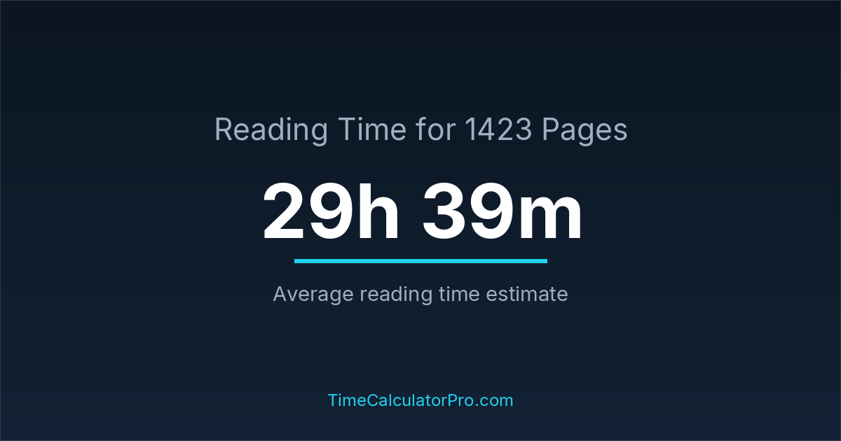 Reading 1423 pages takes about 29 hours and 39 minutes.