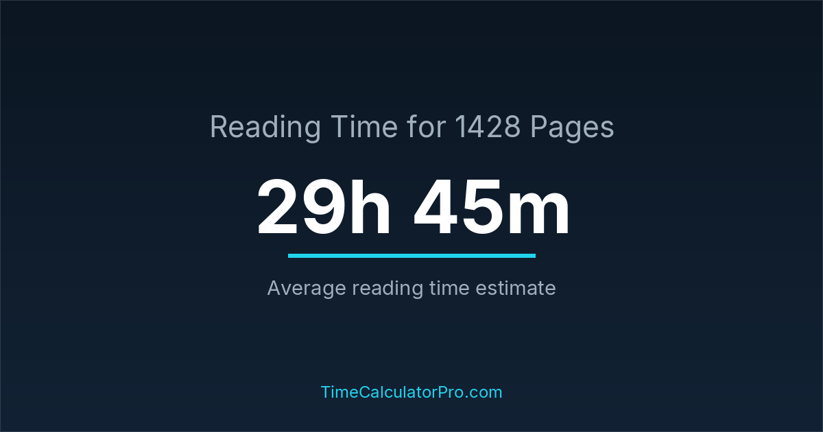 Using a reading time calculator, you can estimate that 1428 pages will take around 29 hours and 45 minutes to complete.