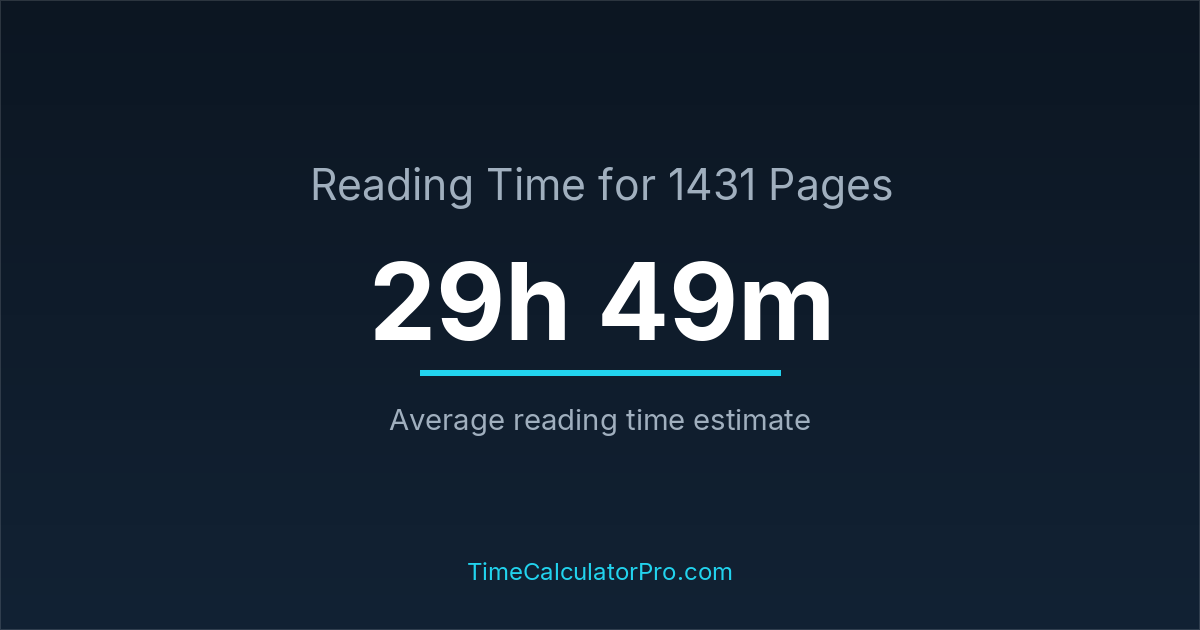 Reading 1431 pages takes about 29 hours and 49 minutes.