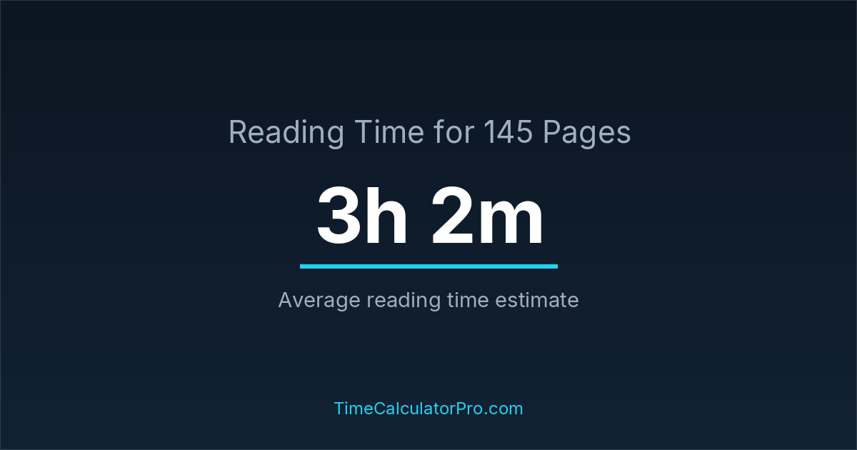If you are wondering how long it takes to read 145 pages, the estimated reading time is roughly 3 hours and 2 minutes based on common reading speed averages.