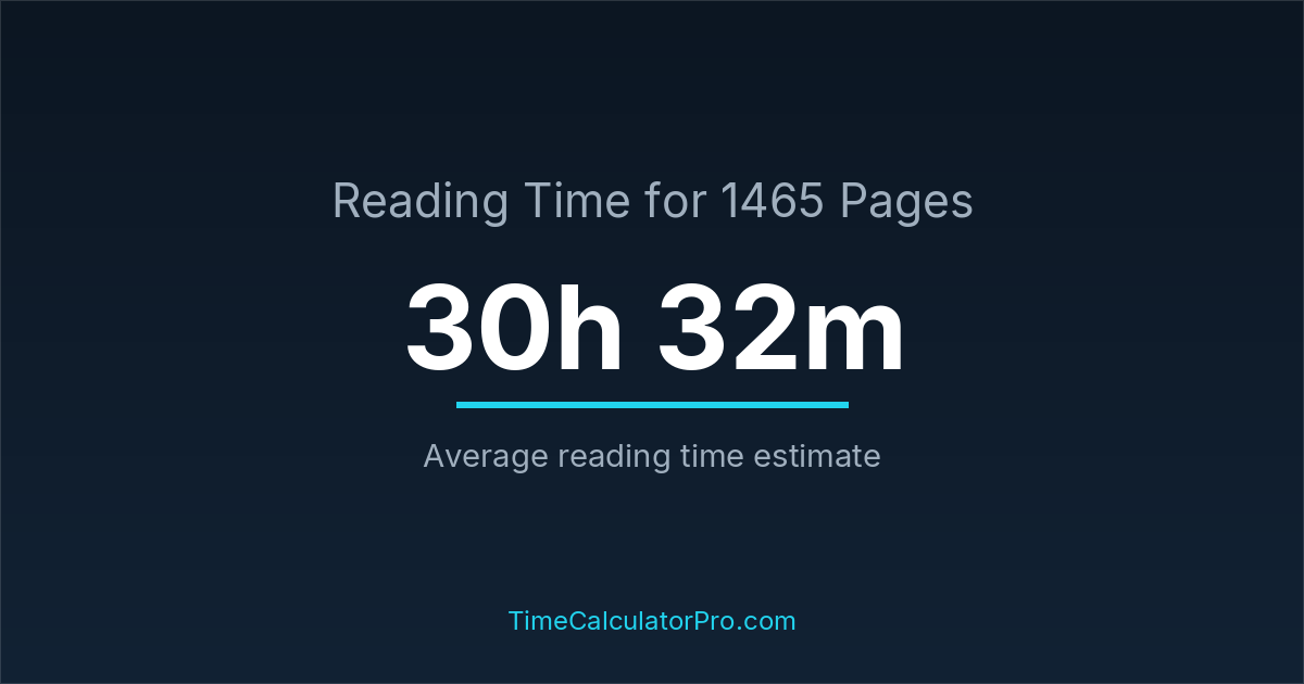 Using a reading time calculator, you can estimate that 1465 pages will take around 30 hours and 32 minutes to complete.