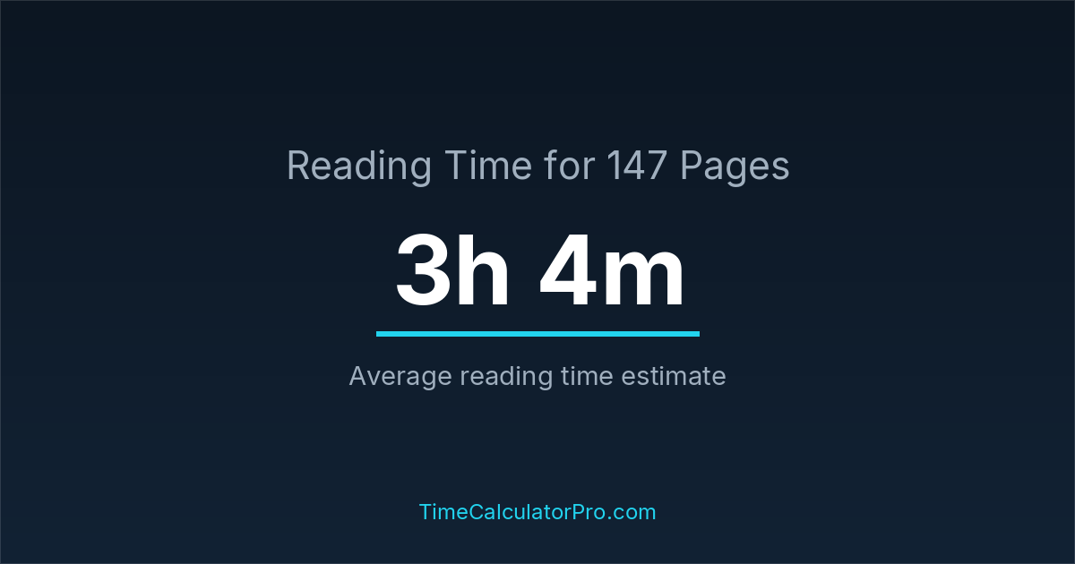 On average, reading 147 pages may require about 3 hours and 4 minutes for most readers, assuming a standard reading pace and moderate difficulty.