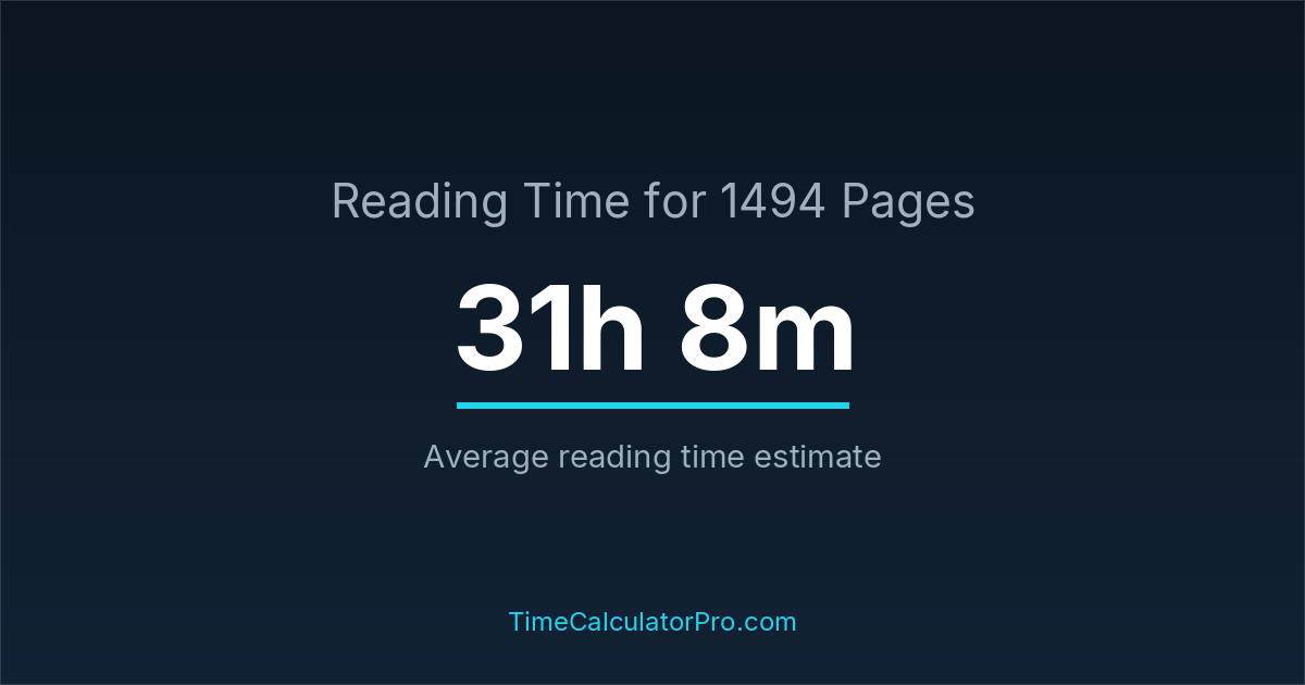 Reading 1494 pages takes about 31 hours and 8 minutes.