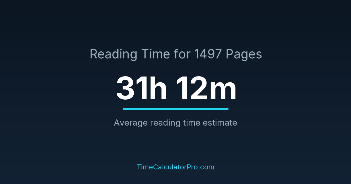 Reading 1497 pages takes about 31 hours and 12 minutes.