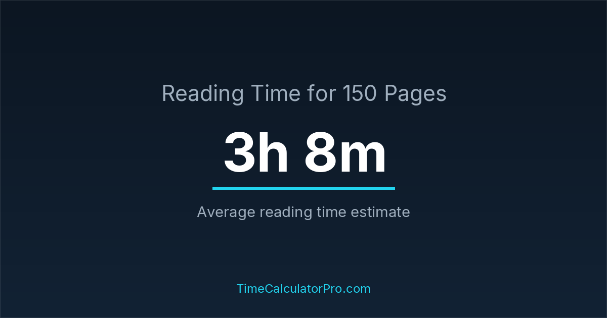 For students and casual readers alike, reading 150 pages usually takes around 3 hours and 8 minutes depending on focus and comprehension level.