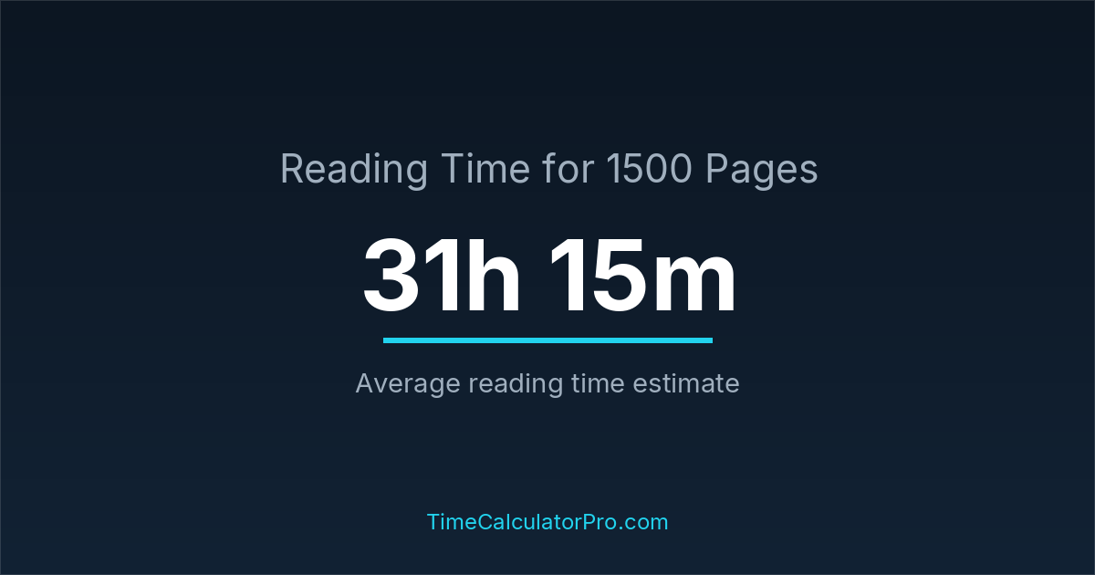 If you read at an average speed of 200 words per minute, reading 1500 pages will take approximately 31 hours and 15 minutes. This estimate assumes around 250 words per page, which is typical for most books.