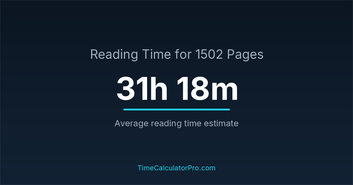 On average, reading 1502 pages may require about 31 hours and 18 minutes for most readers, assuming a standard reading pace and moderate difficulty.