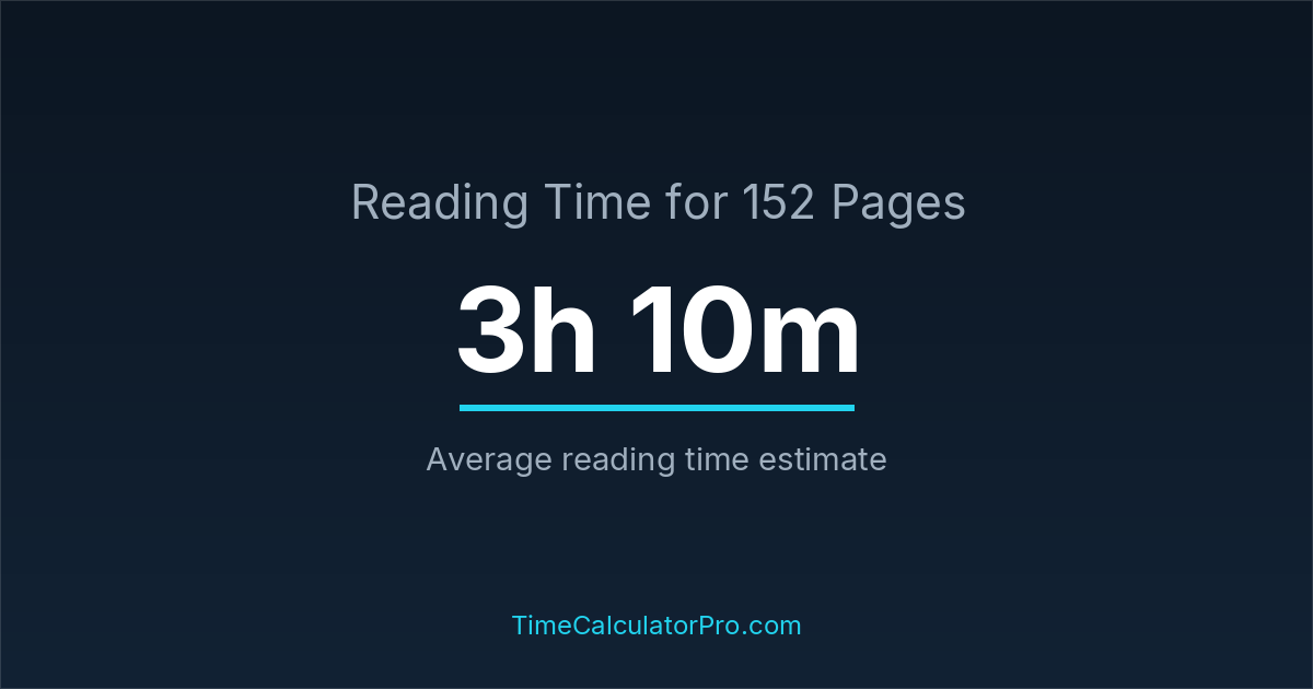 The average reading time for 152 pages is about 3 hours and 10 minutes, but this can change depending on the difficulty of the text.