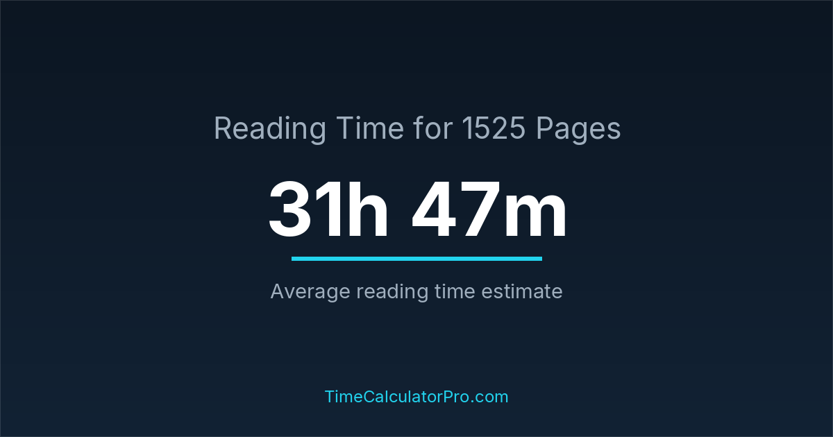 If you read at an average speed of 200 words per minute, reading 1525 pages will take approximately 31 hours and 47 minutes. This estimate assumes around 250 words per page, which is typical for most books.