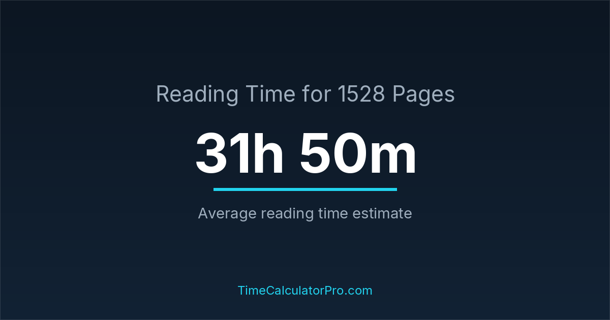 If you read at an average speed of 200 words per minute, reading 1528 pages will take approximately 31 hours and 50 minutes. This estimate assumes around 250 words per page, which is typical for most books.