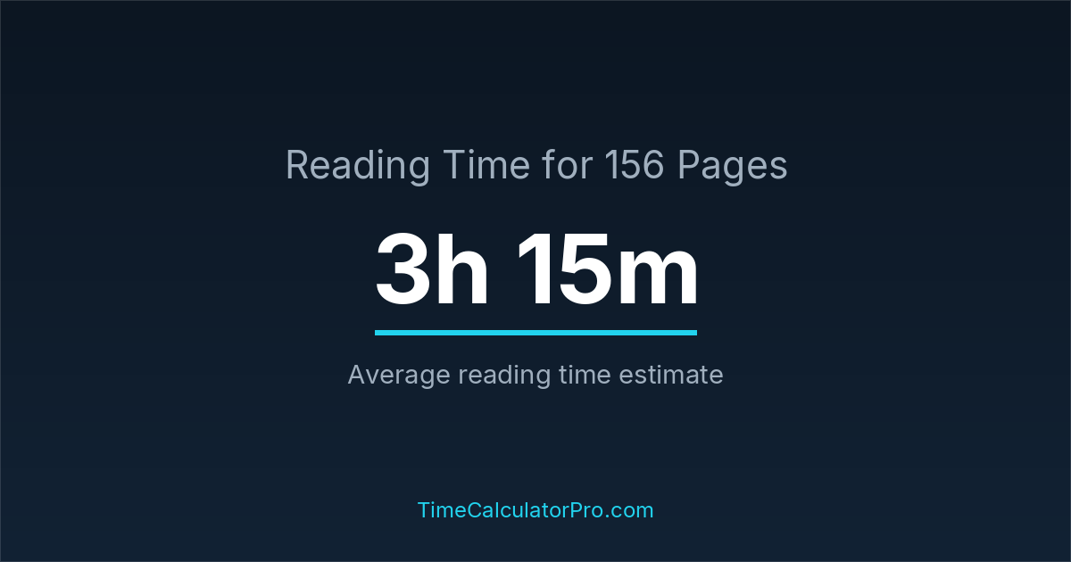 If you are wondering how long it takes to read 156 pages, the estimated reading time is roughly 3 hours and 15 minutes based on common reading speed averages.