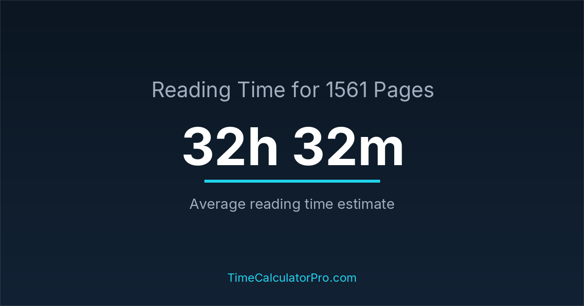 Using a reading time calculator, you can estimate that 1561 pages will take around 32 hours and 32 minutes to complete.