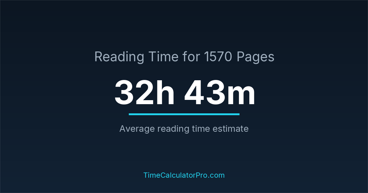 If you read at an average speed of 200 words per minute, reading 1570 pages will take approximately 32 hours and 43 minutes. This estimate assumes around 250 words per page, which is typical for most books.