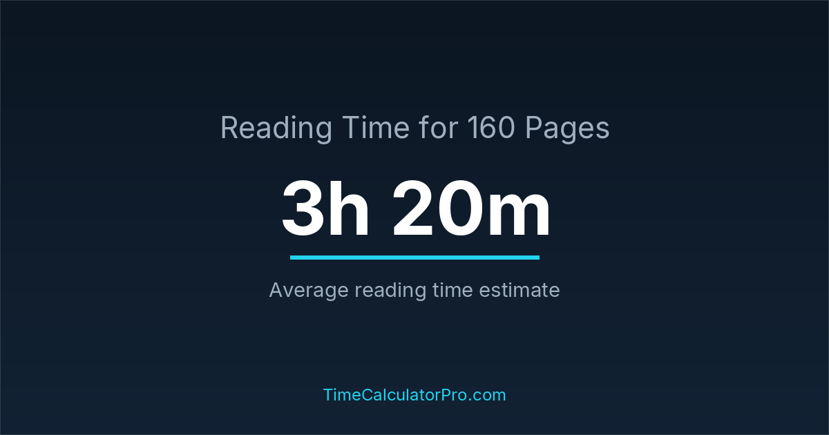 Based on standard reading speeds, reading 160 pages would take roughly 3 hours and 20 minutes under normal conditions.