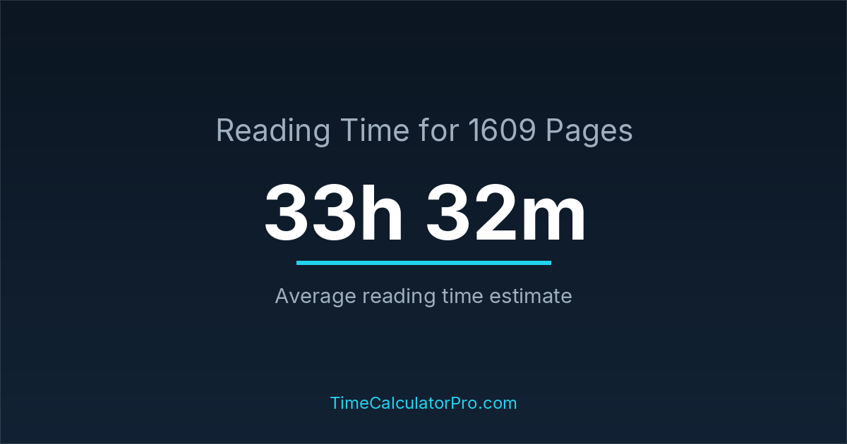 Reading 1609 pages usually takes approximately 33 hours and 32 minutes for the average reader, though this can vary depending on concentration and reading habits.