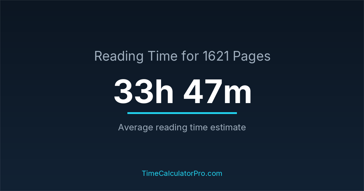 Reading 1621 pages takes about 33 hours and 47 minutes.