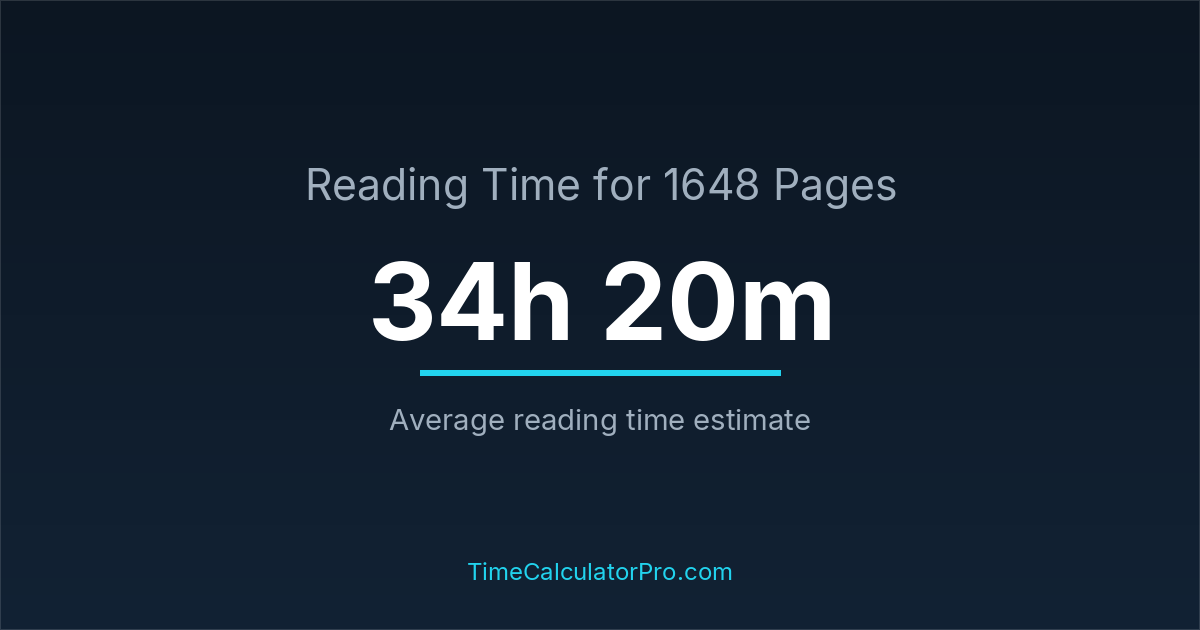A reading time calculator helps estimate how long it will take to complete 1648 pages before you even begin reading, allowing you to plan your time more effectively.