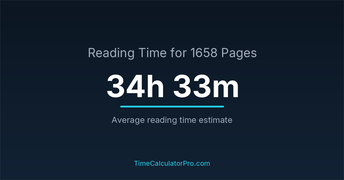 Reading 1658 pages takes about 34 hours and 33 minutes.