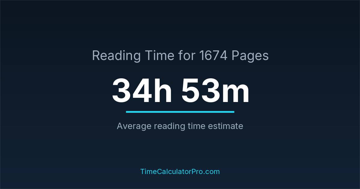 Reading 1674 pages takes about 34 hours and 53 minutes.