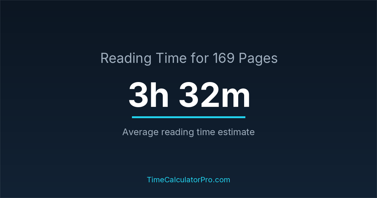Based on standard reading speeds, reading 169 pages would take roughly 3 hours and 32 minutes under normal conditions.