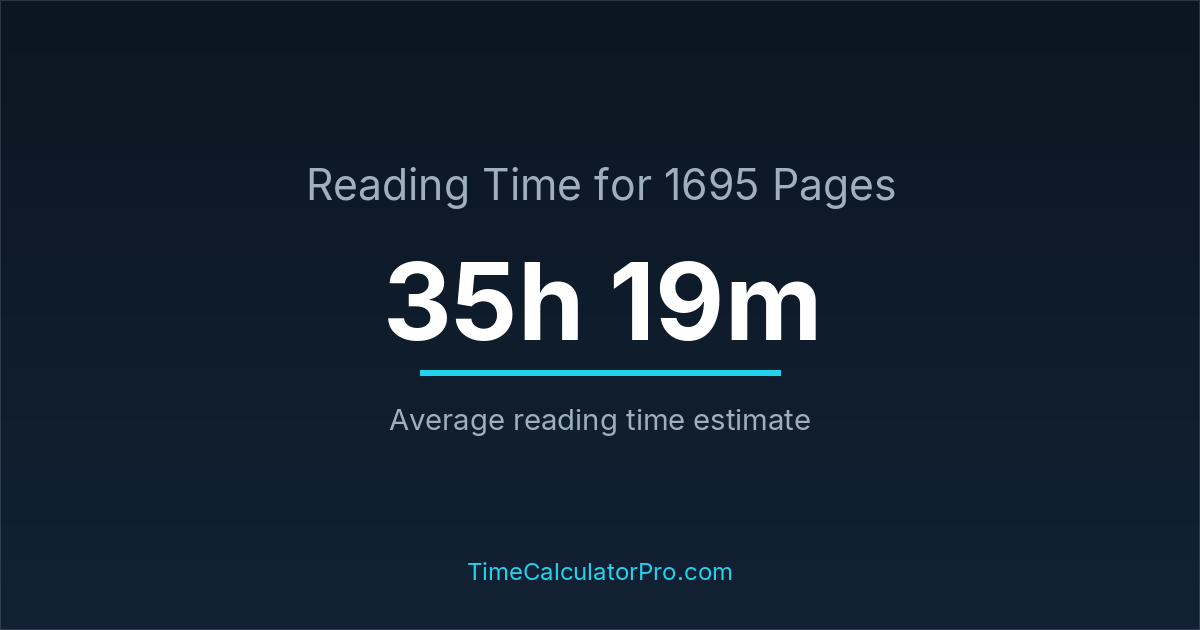 If you read at an average speed of 200 words per minute, reading 1695 pages will take approximately 35 hours and 19 minutes. This estimate assumes around 250 words per page, which is typical for most books.