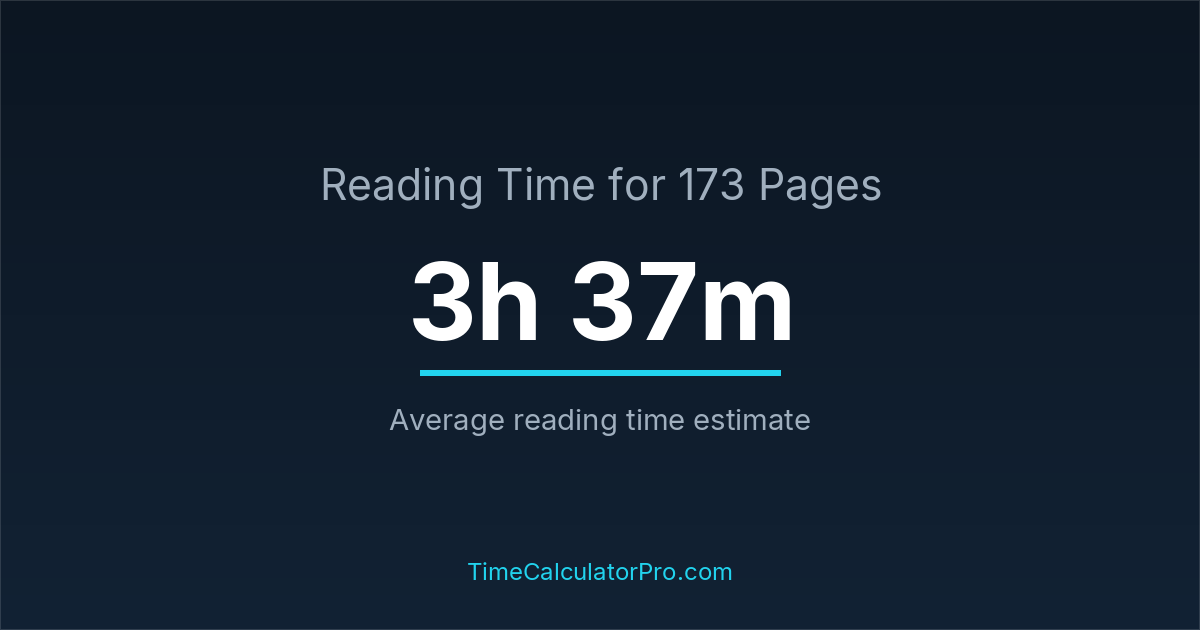 If you read at an average speed of 200 words per minute, reading 173 pages will take approximately 3 hours and 37 minutes. This estimate assumes around 250 words per page, which is typical for most books.