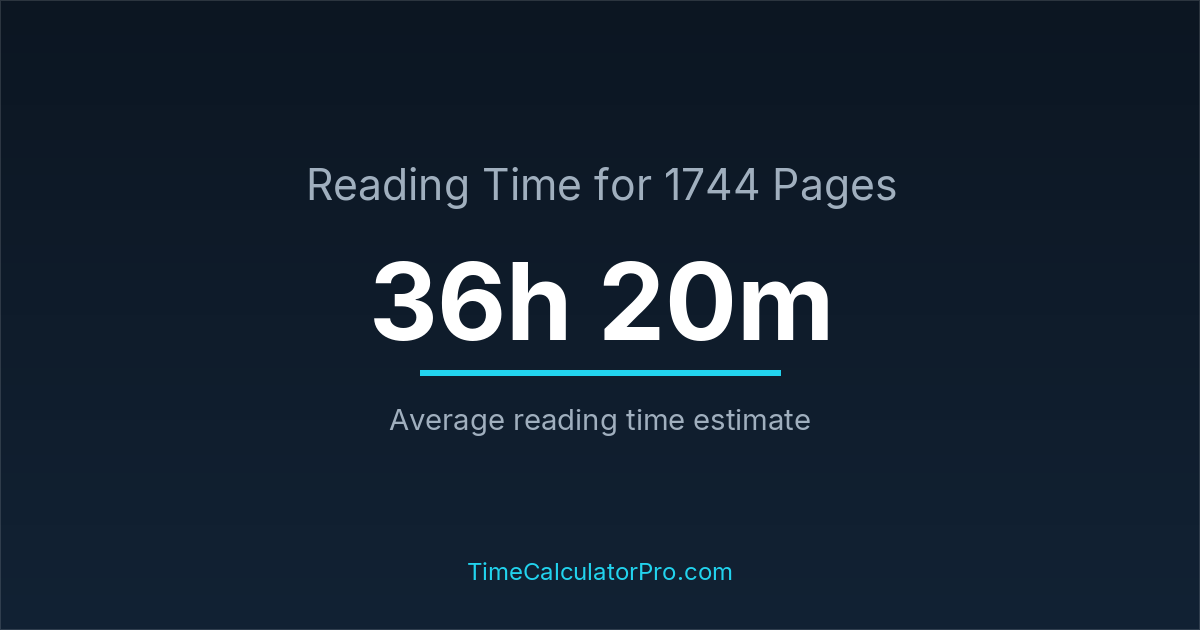 The average reading time for 1744 pages is about 36 hours and 20 minutes, but this can change depending on the difficulty of the text.