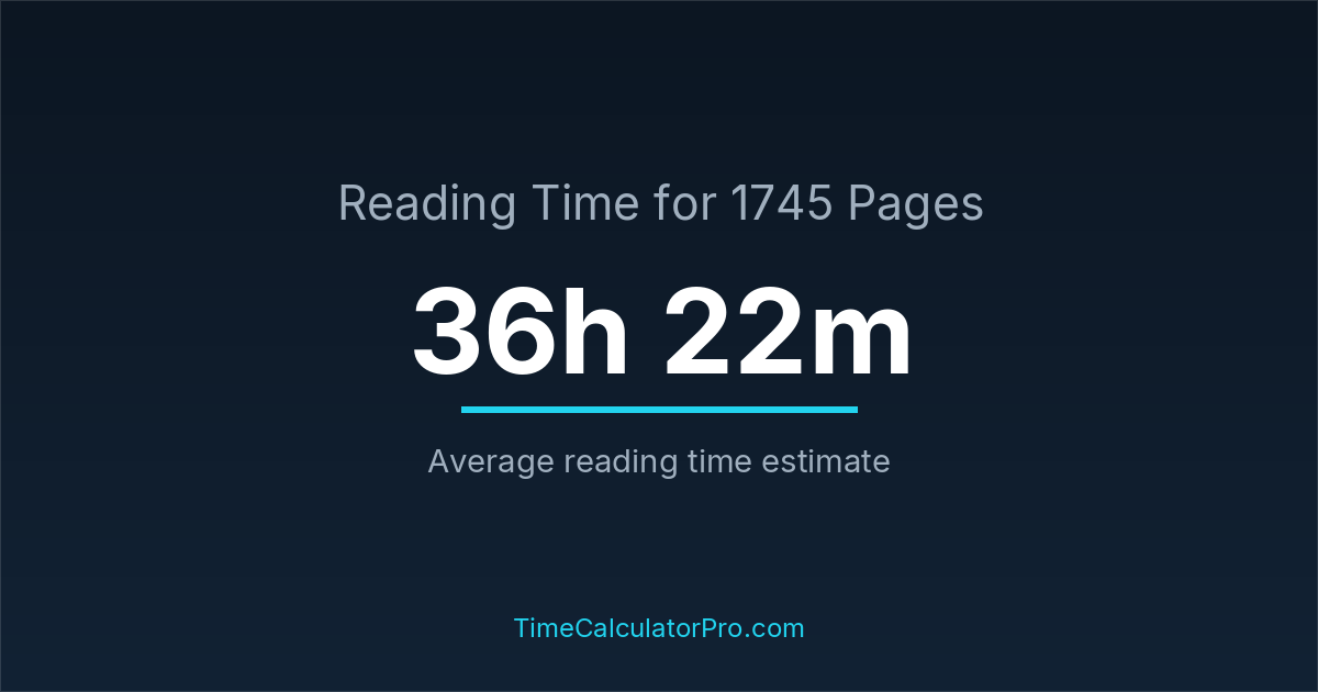 The estimated time to read 1745 pages is approximately 36 hours and 22 minutes for an average adult reader.