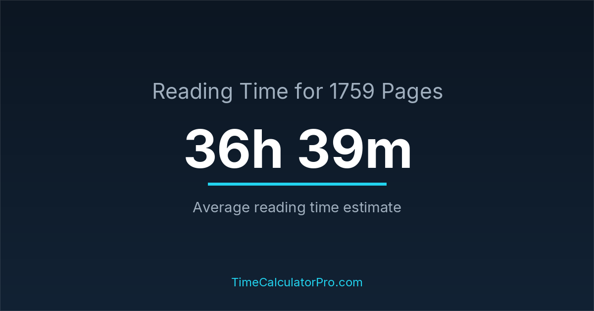 If you read at an average speed of 200 words per minute, reading 1759 pages will take approximately 36 hours and 39 minutes. This estimate assumes around 250 words per page, which is typical for most books.