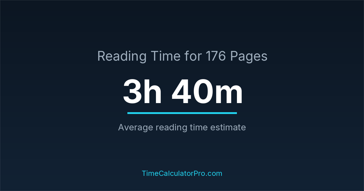 If you read at an average speed of 200 words per minute, reading 176 pages will take approximately 3 hours and 40 minutes. This estimate assumes around 250 words per page, which is typical for most books.