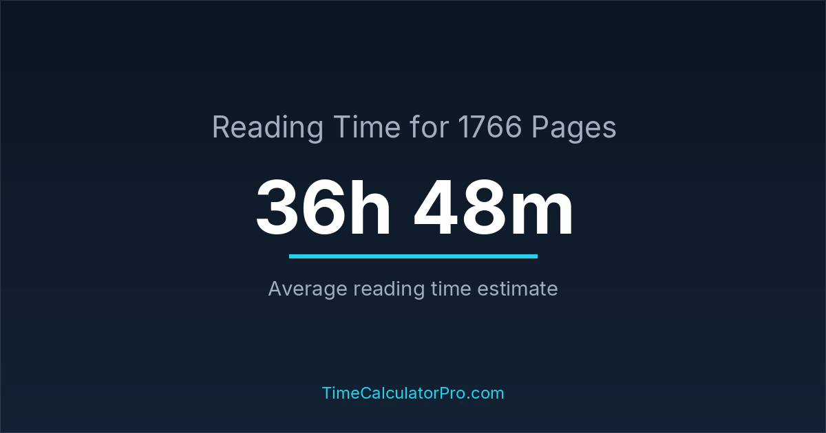 If you read at an average speed of 200 words per minute, reading 1766 pages will take approximately 36 hours and 48 minutes. This estimate assumes around 250 words per page, which is typical for most books.