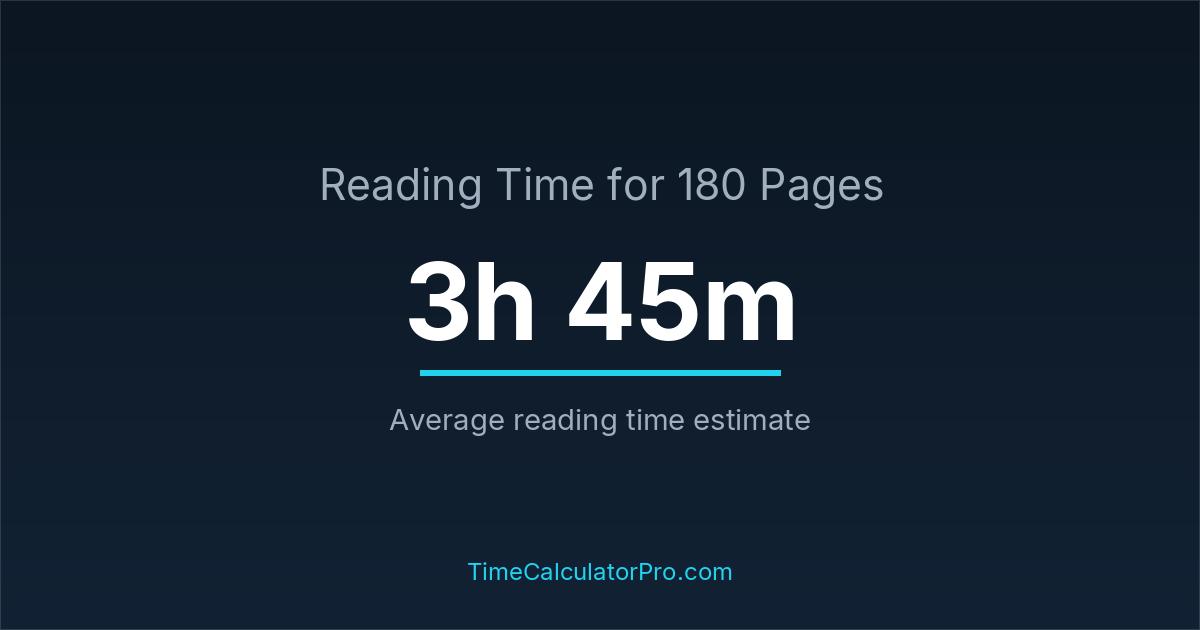 If you read at an average speed of 200 words per minute, reading 180 pages will take approximately 3 hours and 45 minutes. This estimate assumes around 250 words per page, which is typical for most books.