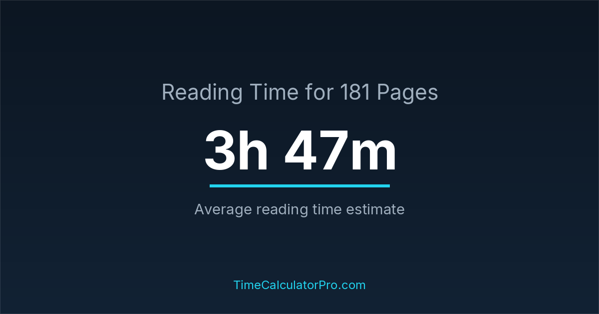 A reading time calculator helps estimate how long it will take to complete 181 pages before you even begin reading, allowing you to plan your time more effectively.