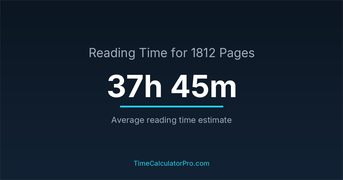 If you read at an average speed of 200 words per minute, reading 1812 pages will take approximately 37 hours and 45 minutes. This estimate assumes around 250 words per page, which is typical for most books.