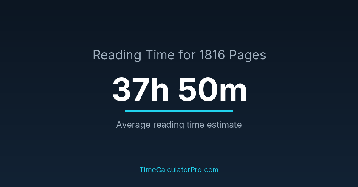 If you read at an average speed of 200 words per minute, reading 1816 pages will take approximately 37 hours and 50 minutes. This estimate assumes around 250 words per page, which is typical for most books.