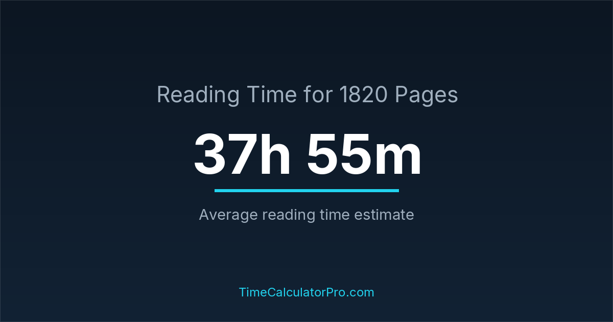 The estimated time to read 1820 pages is approximately 37 hours and 55 minutes for an average adult reader.