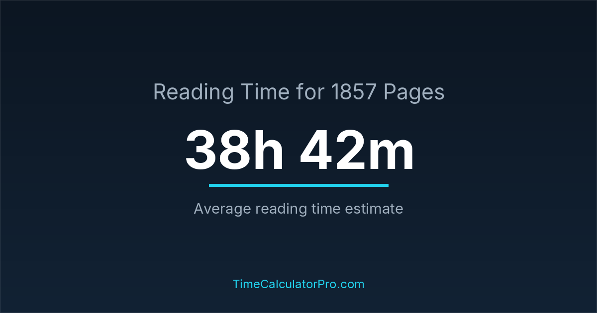 Reading 1857 pages usually takes approximately 38 hours and 42 minutes for the average reader, though this can vary depending on concentration and reading habits.