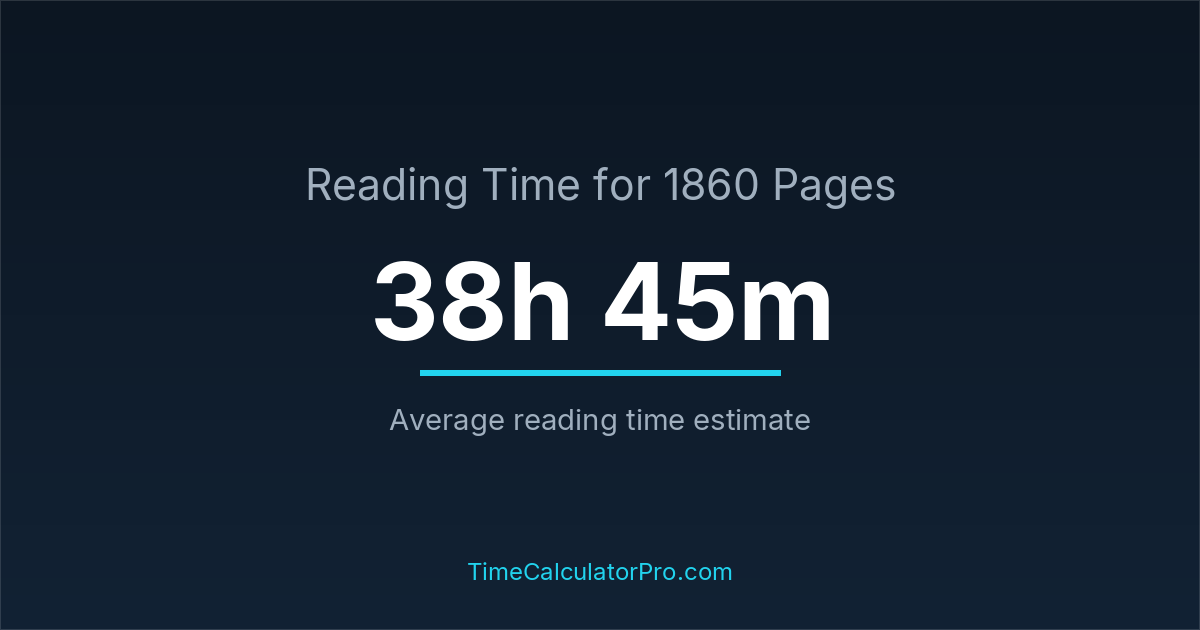 If you read at an average speed of 200 words per minute, reading 1860 pages will take approximately 38 hours and 45 minutes. This estimate assumes around 250 words per page, which is typical for most books.
