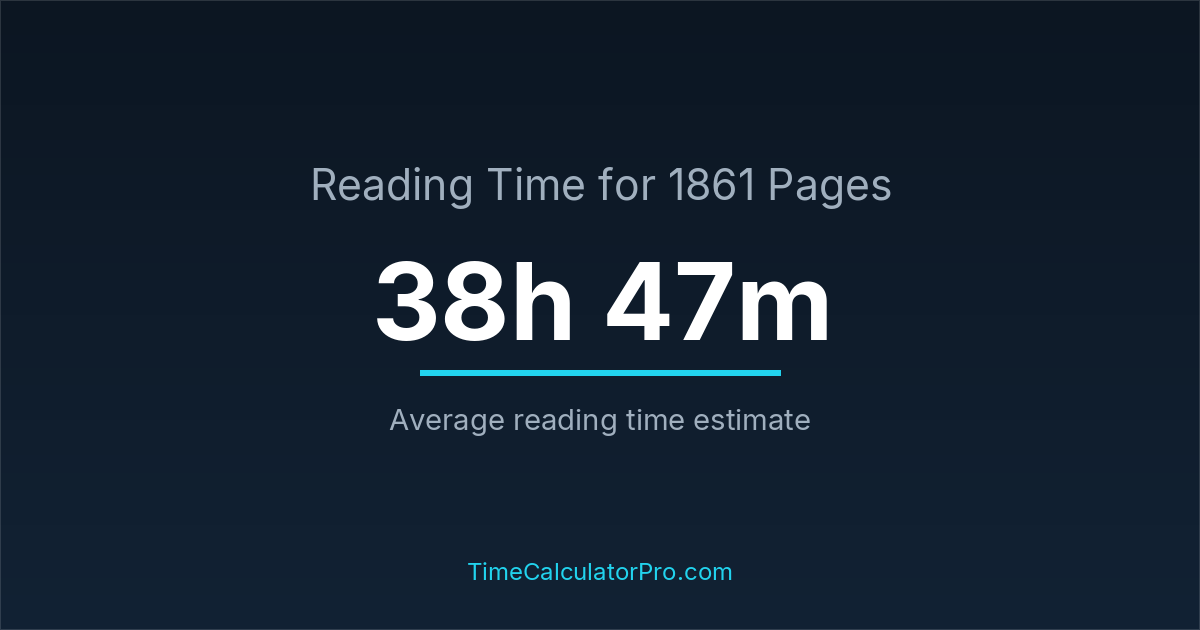 If you read at an average speed of 200 words per minute, reading 1861 pages will take approximately 38 hours and 47 minutes. This estimate assumes around 250 words per page, which is typical for most books.