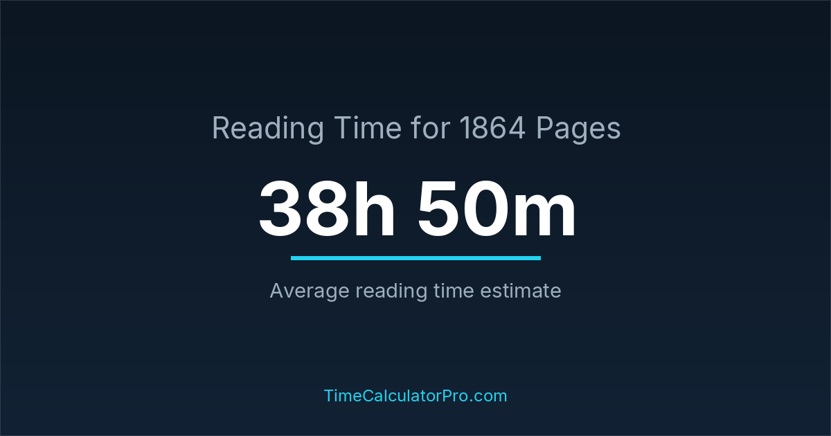 If you read at an average speed of 200 words per minute, reading 1864 pages will take approximately 38 hours and 50 minutes. This estimate assumes around 250 words per page, which is typical for most books.