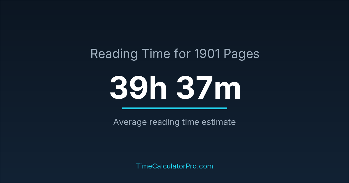 The estimated time to read 1901 pages is approximately 39 hours and 37 minutes for an average adult reader.