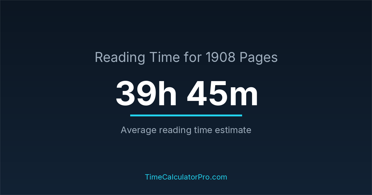 If you read at an average speed of 200 words per minute, reading 1908 pages will take approximately 39 hours and 45 minutes. This estimate assumes around 250 words per page, which is typical for most books.