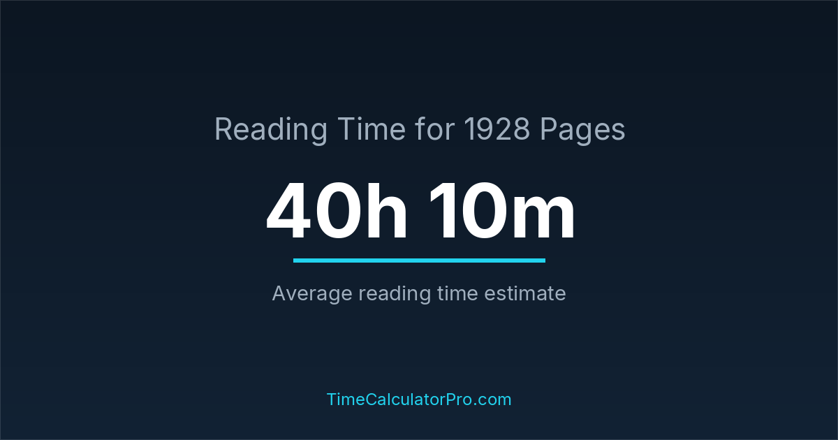 If you read at an average speed of 200 words per minute, reading 1928 pages will take approximately 40 hours and 10 minutes. This estimate assumes around 250 words per page, which is typical for most books.