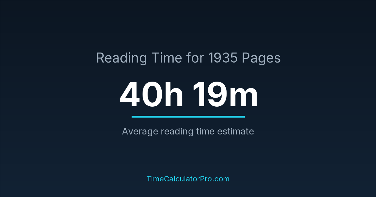 If you read at an average speed of 200 words per minute, reading 1935 pages will take approximately 40 hours and 19 minutes. This estimate assumes around 250 words per page, which is typical for most books.