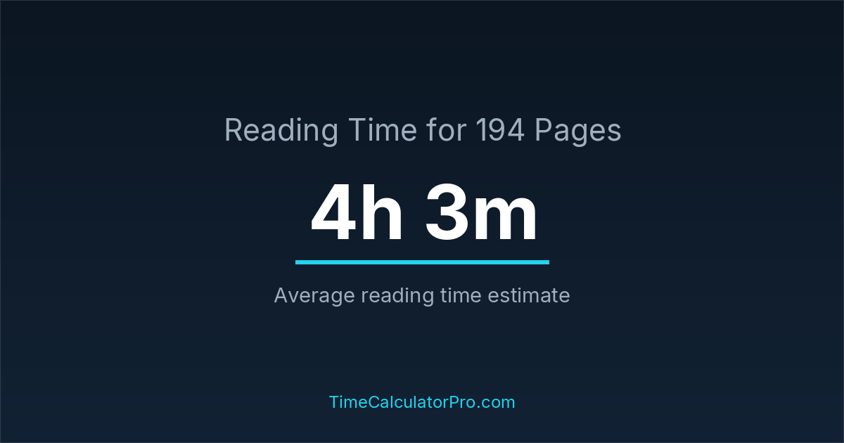 Reading 194 pages takes about 4 hours and 3 minutes.