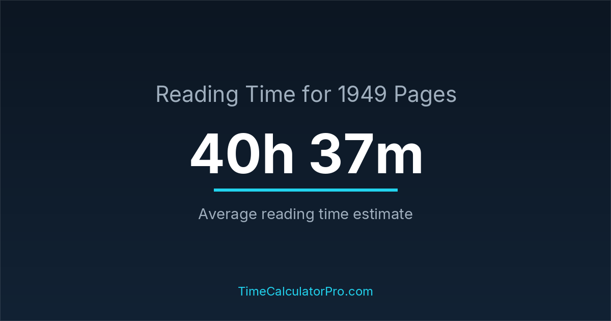 If you read at an average speed of 200 words per minute, reading 1949 pages will take approximately 40 hours and 37 minutes. This estimate assumes around 250 words per page, which is typical for most books.