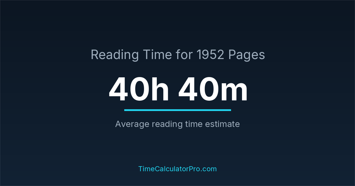 If you are wondering how long it takes to read 1952 pages, the estimated reading time is roughly 40 hours and 40 minutes based on common reading speed averages.