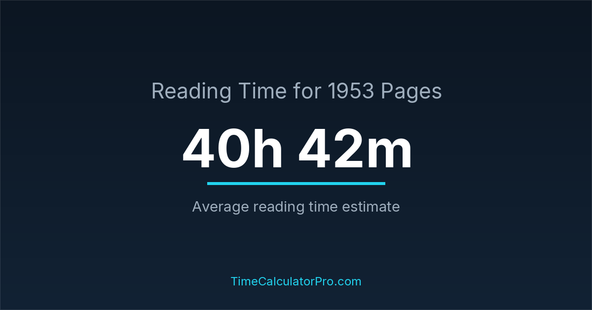 If you read at an average speed of 200 words per minute, reading 1953 pages will take approximately 40 hours and 42 minutes. This estimate assumes around 250 words per page, which is typical for most books.