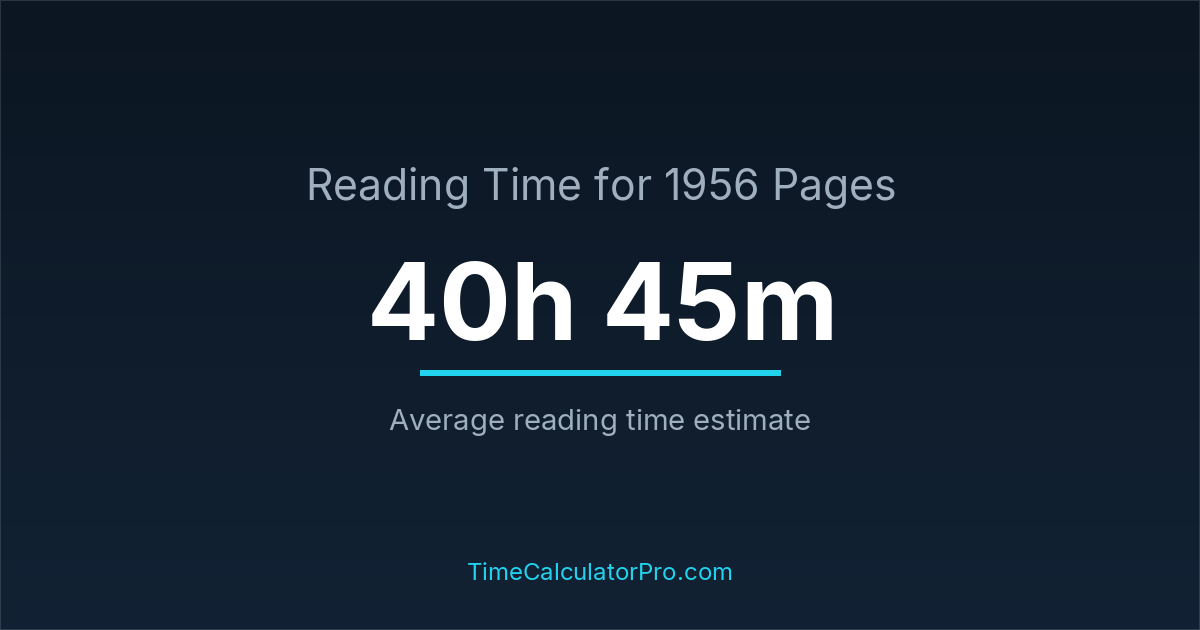 If you read at an average speed of 200 words per minute, reading 1956 pages will take approximately 40 hours and 45 minutes. This estimate assumes around 250 words per page, which is typical for most books.