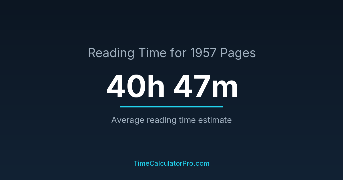 If you are wondering how long it takes to read 1957 pages, the estimated reading time is roughly 40 hours and 47 minutes based on common reading speed averages.